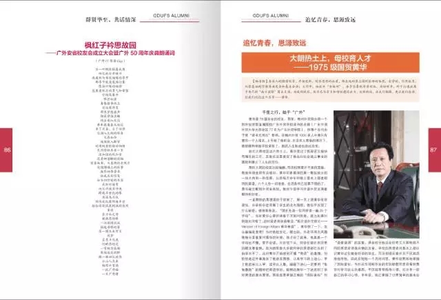 《广外校友》创刊于2007年,是一本面向广外海内外校友发行的刊物。近十年来,《广外校友》已经成为广大校友和母校以及校友之间交流互动的一个有效平台,丰富了广大校友的精神生活,更增强了校友们“知校、爱校、荣校”的荣誉感和责任感。该刊栏目多样,内容丰富。其中的“校友动态”、“广外人物”、“校友风采”、“校园撷英”、“朝花夕拾”、“学子家园”、“校友随笔”等栏目面向校友和广大读者征稿,也为校友企业提供宣传服务,欢迎广大校友积极投稿,投搞方式:请发至广外校友总会邮箱alumni@gdufs.edu.cn,来稿请注明详细通讯联络方式。