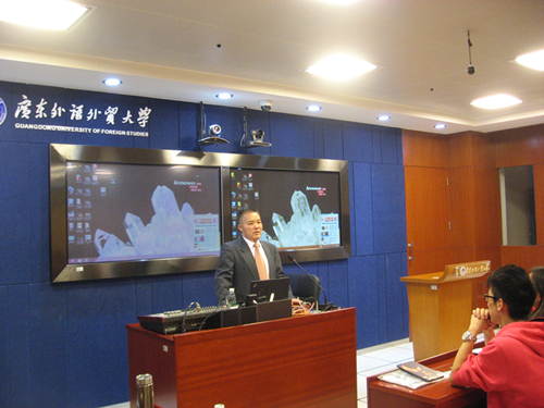 翻译学院院长平洪、金融学院党委书记马庆华分别主持了讲座。留学生教育学院院长梁学宏陪同出席了这两场讲座。