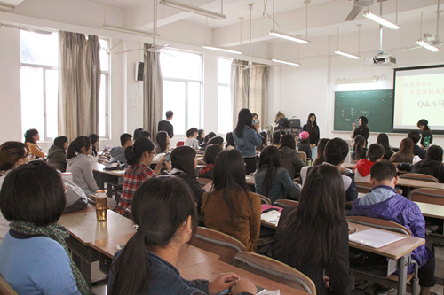 11月13日下午,由校友总会秘书长主办的校友讲坛之“从广外新闻人到国际化妆师”在南校区举行。本次主讲人为04级新闻学校友李莎莎,现任广州O2氧气摄影工作室形象总监。
