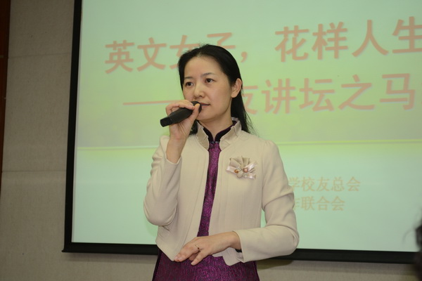 2013年11月21日下午,校友讲坛之”英文女子,花样年华”在广外北校区六教B106—108举行,主讲人马缨女士(83级英语),现任广州市仁华保险代理有限公司总经理、中国致公党广州市委员会青年委员会委员、广东省工商联女企业家商会理事。校友总会秘书处工作人员出席了本次活动。
