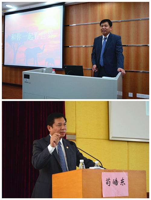 我校校长仲伟合、副校长许国彬专门抽空会见了苟皓东。本次讲座由校友总会秘书处主办,英文学院、法学院协办,宣传部、留学生院等部门主要负责人也出席了讲座活动。