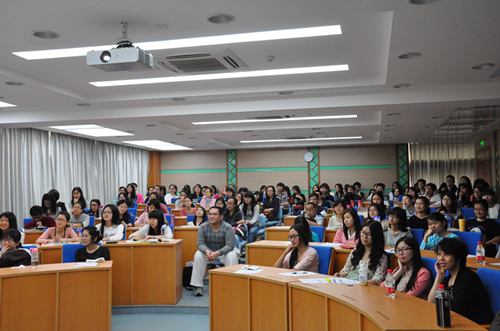 2013年4月18、19日下午3时,校友讲坛之“与你一起看世界”先后在我校北校区MBA学院丝纺讲堂、南校区八角楼会议厅举行。我国外交部拉丁美洲和加勒比司参赞、80级英语校友苟皓东为南北两个校区的同学们带来了精彩的讲座。