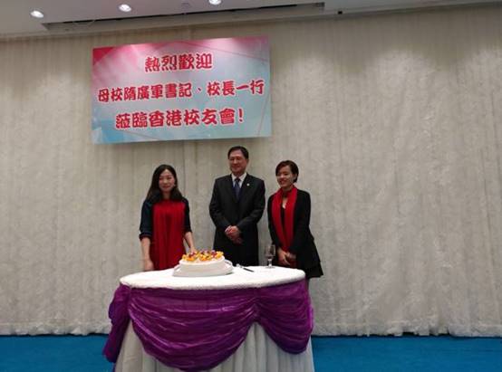 晚宴当日更是两位年轻校友李诗廷和马燕婷的生日,贴心的香港校友会为两位寿星准备了生日蛋糕,并邀请隋书记带领大家共同唱起了生日歌,为她们庆祝生日。
